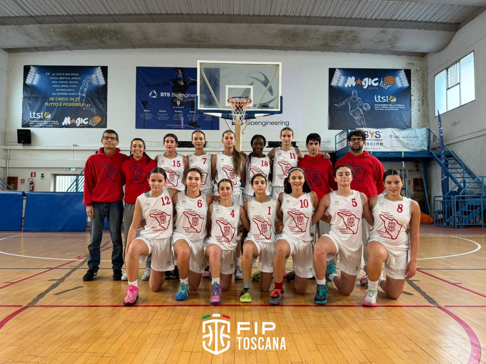 Partita a senso unico contro le pari età dell’Umbria che ha visto subito un parziale delle toscane in avvio di primo quarto concluso sul 39-5. Di lì in avanti il divario tra le due compagini si è dilatato sempre più fino ad arrivare al risultato finale di 103-24 col quale si è concluso l’incontro. Anche in questa occasione tutte le ragazze sono scese in campo contribuendo in egual misura alla vittoria finale.