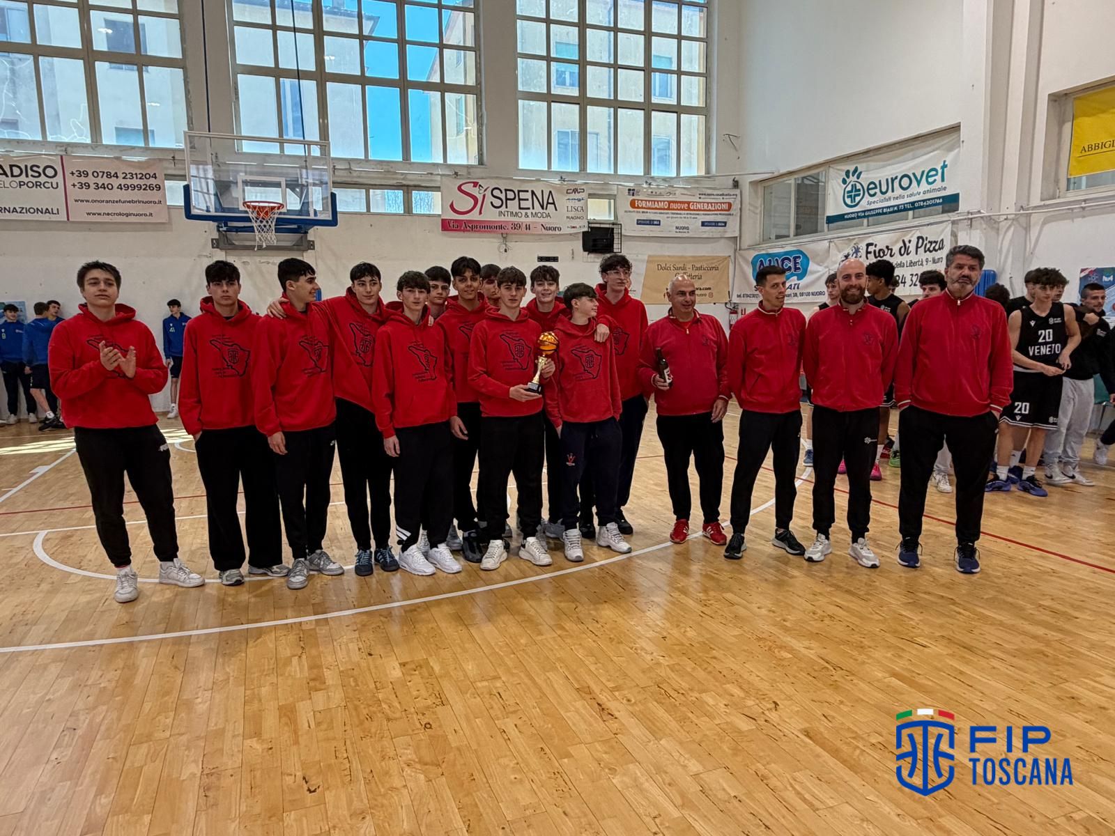 Un onorevolissimo quarto posto finale al Torneo di Nuoro per la Toscana Maschile nati 2011. Dopo una buona partenza contro la selezione Campana, i ragazzi del granducato hanno subito lo stop contro la formazione del Lazio, alla quale però hanno tenuto testa per 3/4, per cedere solo nell’ultimo tempino, grazie ad una percentuale dall’arco lungo dei 3 punti, veramente al di sopra della categoria, per i laziali. Nell’ultima partita di qualificazione, i nostri biancorossi hanno avuto la meglio della ben più quotata Lombardia, che aveva strapazzato nella mattinata la Campania con un punteggio larghissimo, dominando in tutti i quarti, ribattendo colpo su colpo ai tentativi lombardi di ricucire il gap sotto la doppia cifra di distacco, portando a casa così la qualificazione a disputare la finale per il 3º e il 4º posto.