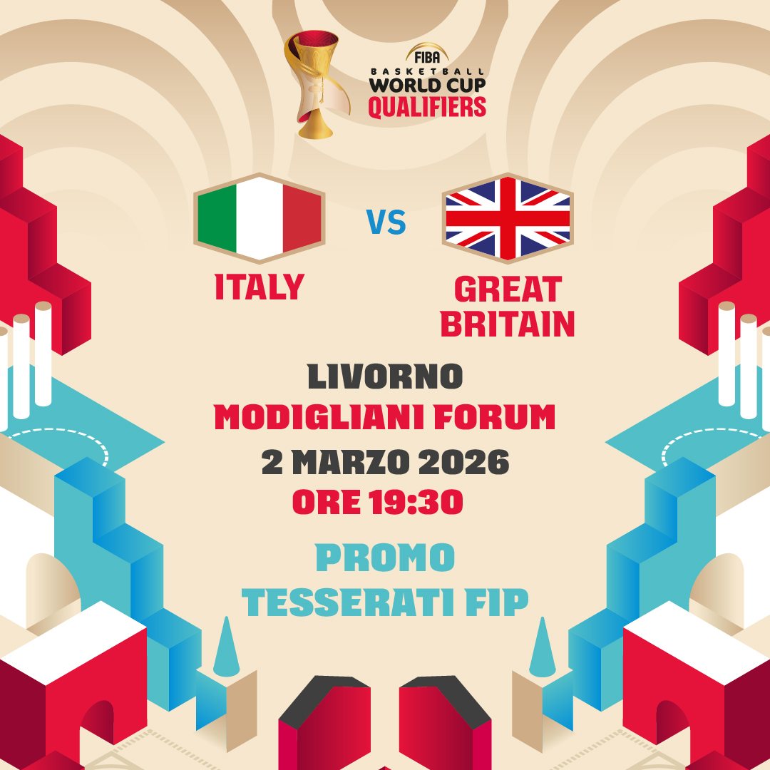 Comunichiamo le indicazioni per usufruire della promozione riservata alle società Fip Toscana e le relative modalità di richiesta per l’acquisto di biglietti per la partita di World Cup 2027 Qualifiers, Italia-Gran Bretagna che si svolgerà a Livorno il prossimo 2 Marzo al Modigliani Forum, via Veterani dello Sport 8.